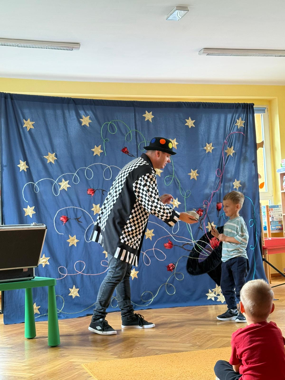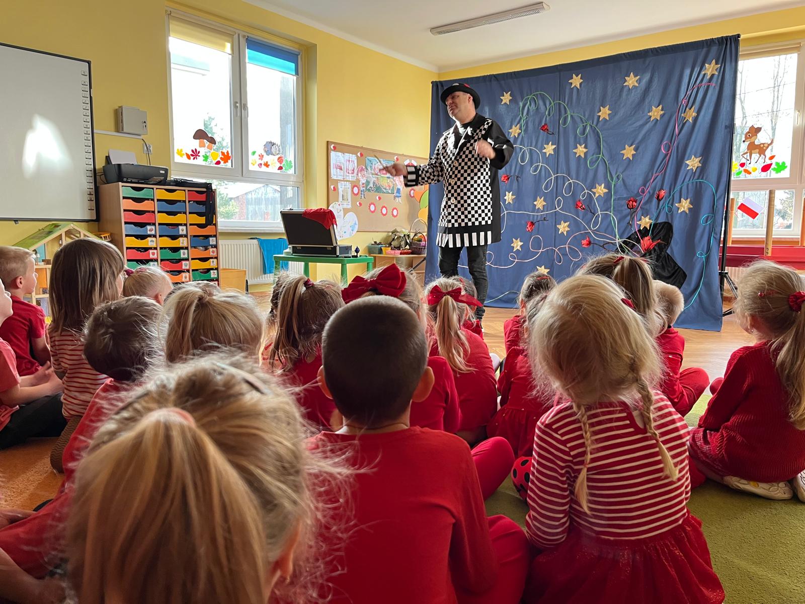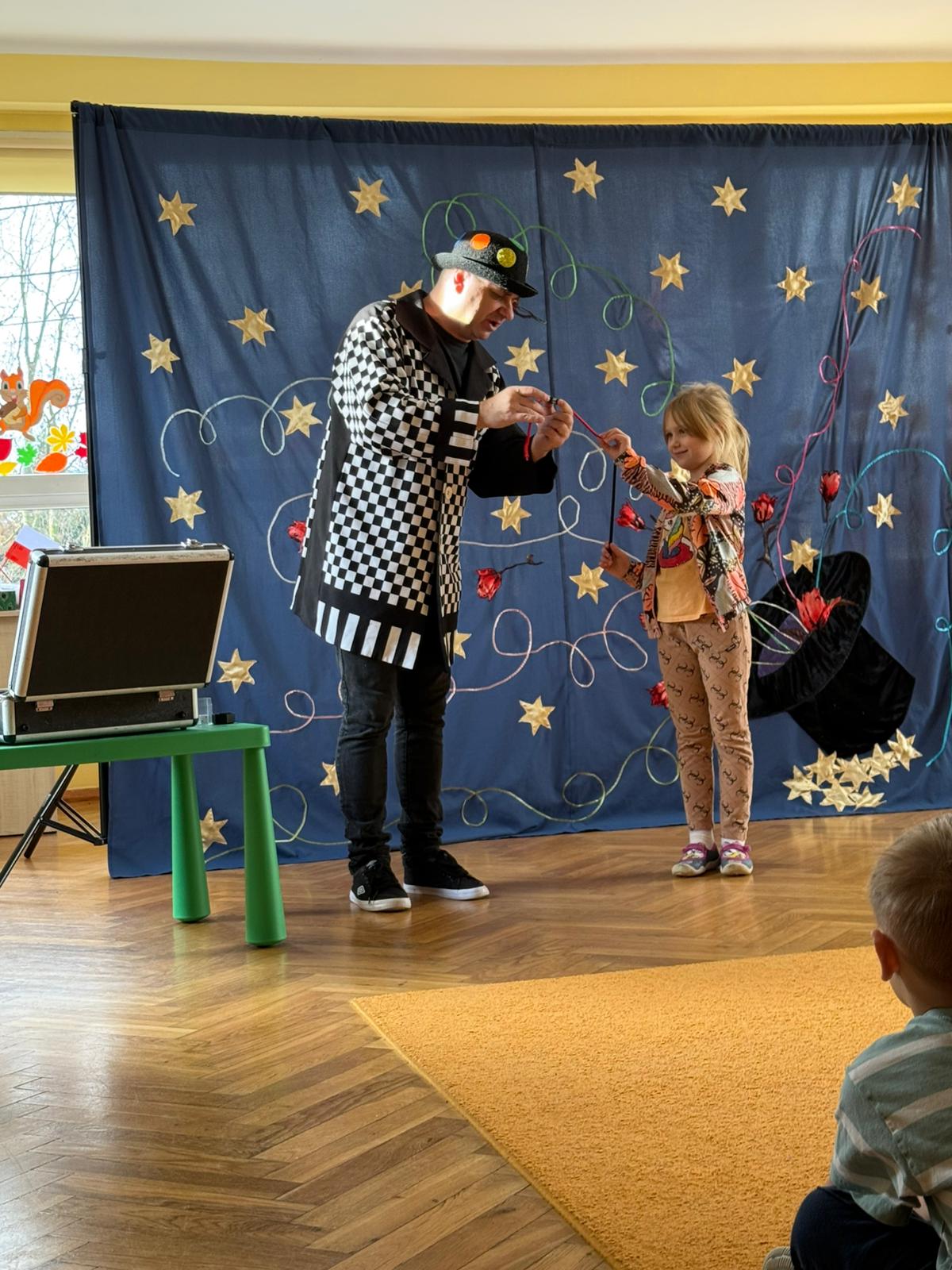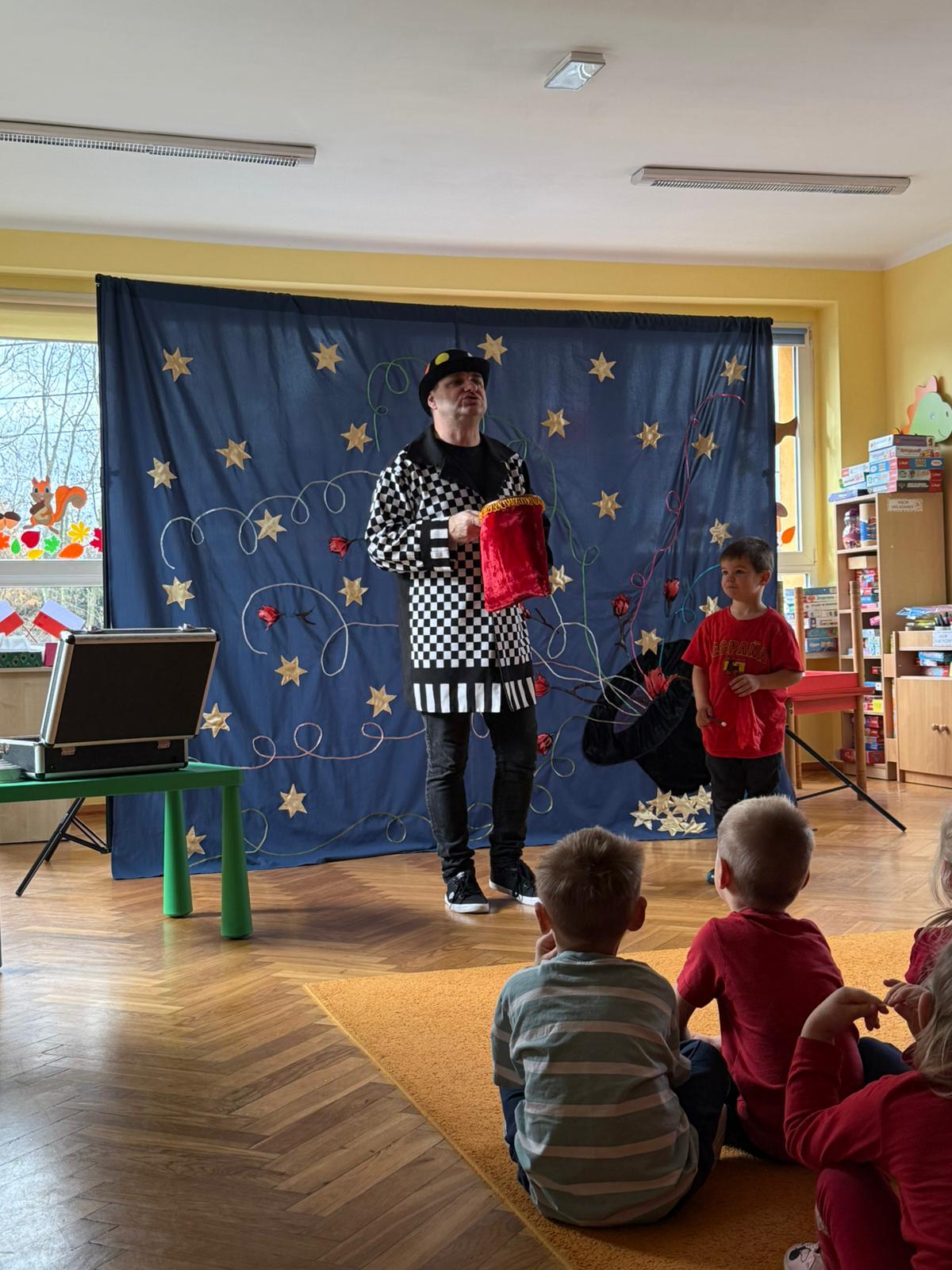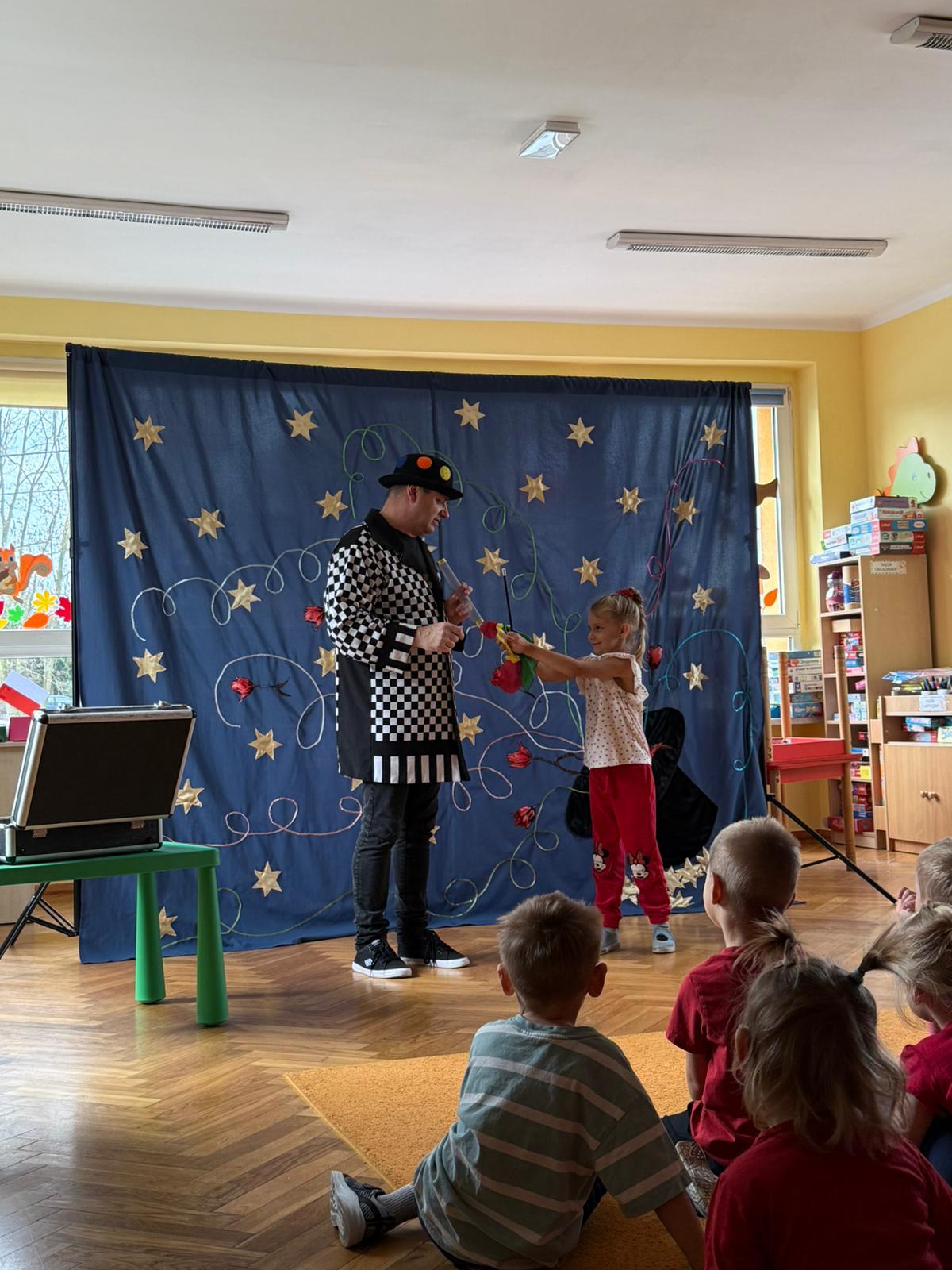 Dzieci przeniosły się w świat magii i czarów. Wyprawa do tajemniczego świata dostarczyła wszystkim sporo satysfakcji i radości. Dzieci miały możliwość przeżycia czegoś niezwykłego, ponieważ aktywnie uczestniczyły w przedstawieniu. Uczyły się tajemniczych zaklęć, a odważni ochotnicy pomagali mistrzowi w jego pokazie. Dzieci miały okazje podziwiać najróżniejsze sztuczki m. in. : z kartami, sznurkami, chustami, kwiatami i wiele innych.